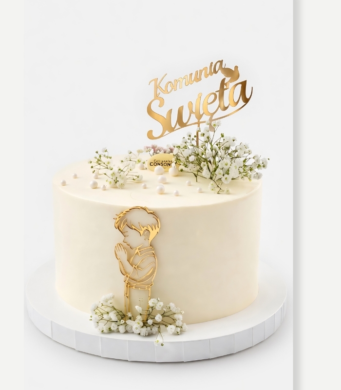 Nasze torty na komunię oferują szeroki wybór smaków – od delikatnych tortów waniliowych, przez intensywne torty czekoladowe, aż po lekkie i świeże torty owocowe. Dodatki takie jak kremy, ganache, masa marcepanowa i ręcznie robione dekoracje sprawiają, że każdy tort jest jedyny w swoim rodzaju. Każdy tort Consonni jest starannie przygotowany, aby ciasto było wilgotne, kremy aksamitne, a owoce soczyste i aromatyczne.