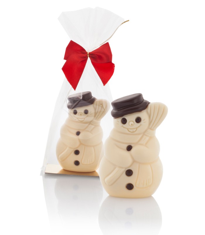 Ręcznie robiony bałwanek z luksusowej białej czekolady. Zapakowany w pudełko PET